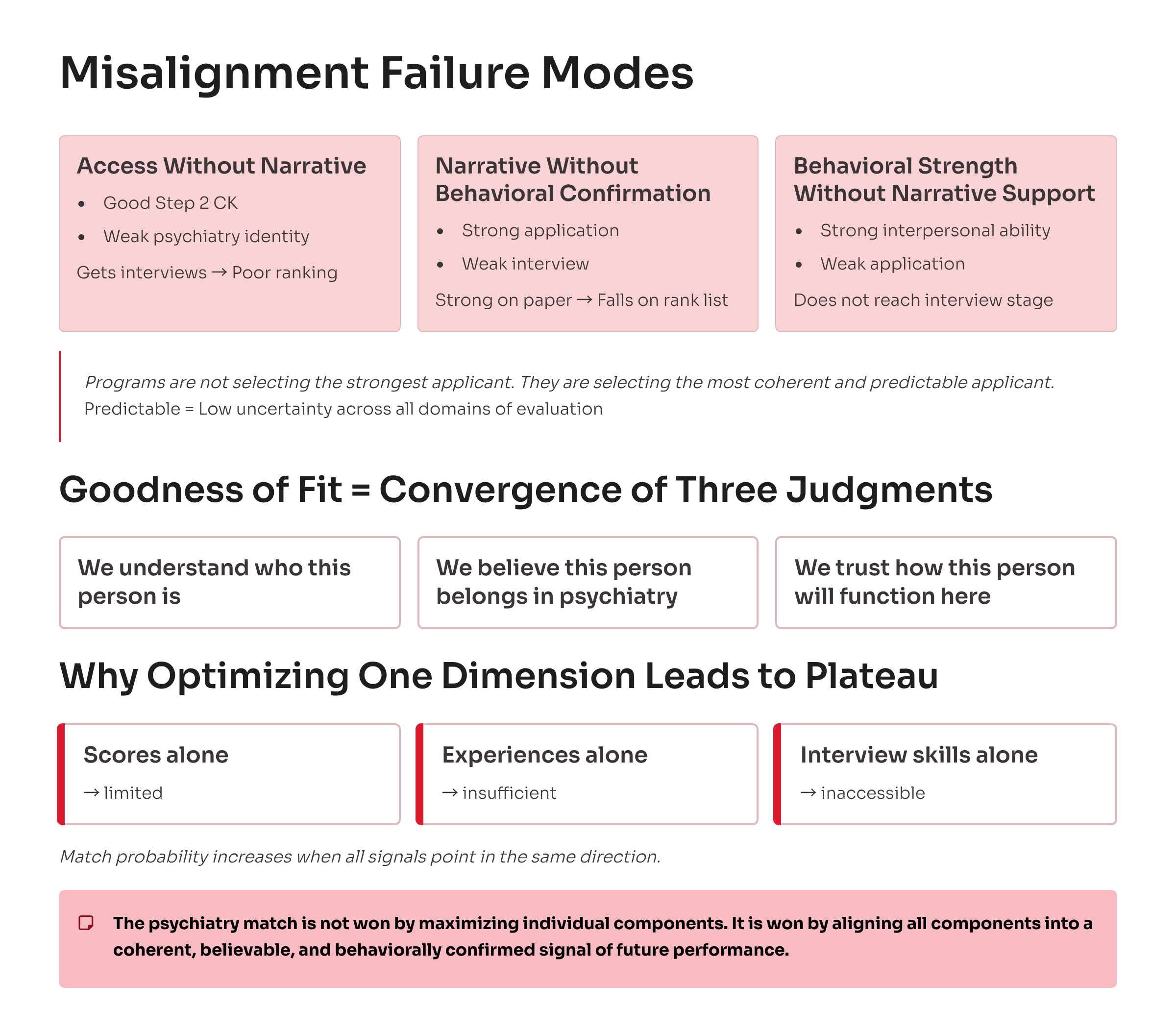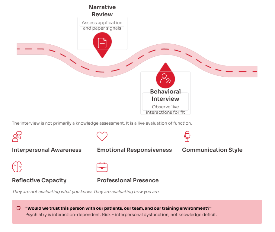 Applicants are not filtered because they are weak—they are filtered because they are not interpretable as psychiatry-specific.
